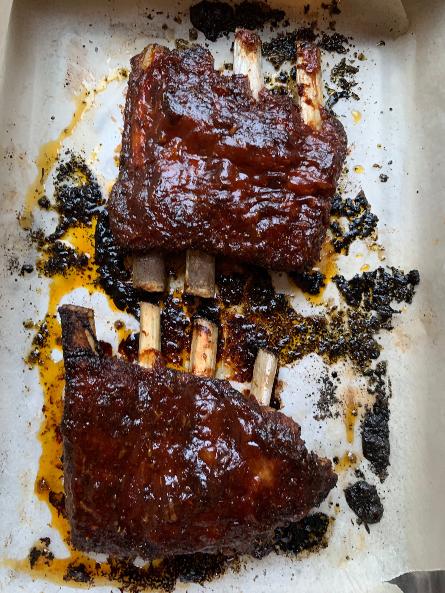 - 2 x 1kg American baby pork ribs, brought to room temperature before cooking