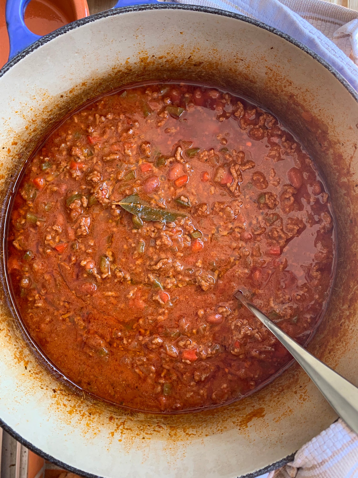 - Heat a large saucepan over a medium-to-high heat. Sauté the onion, garlic, capsicum and chilli for 2-3 minutes or until soft. Add the beef mince and cook for a further 3-4 minutes or until brown.