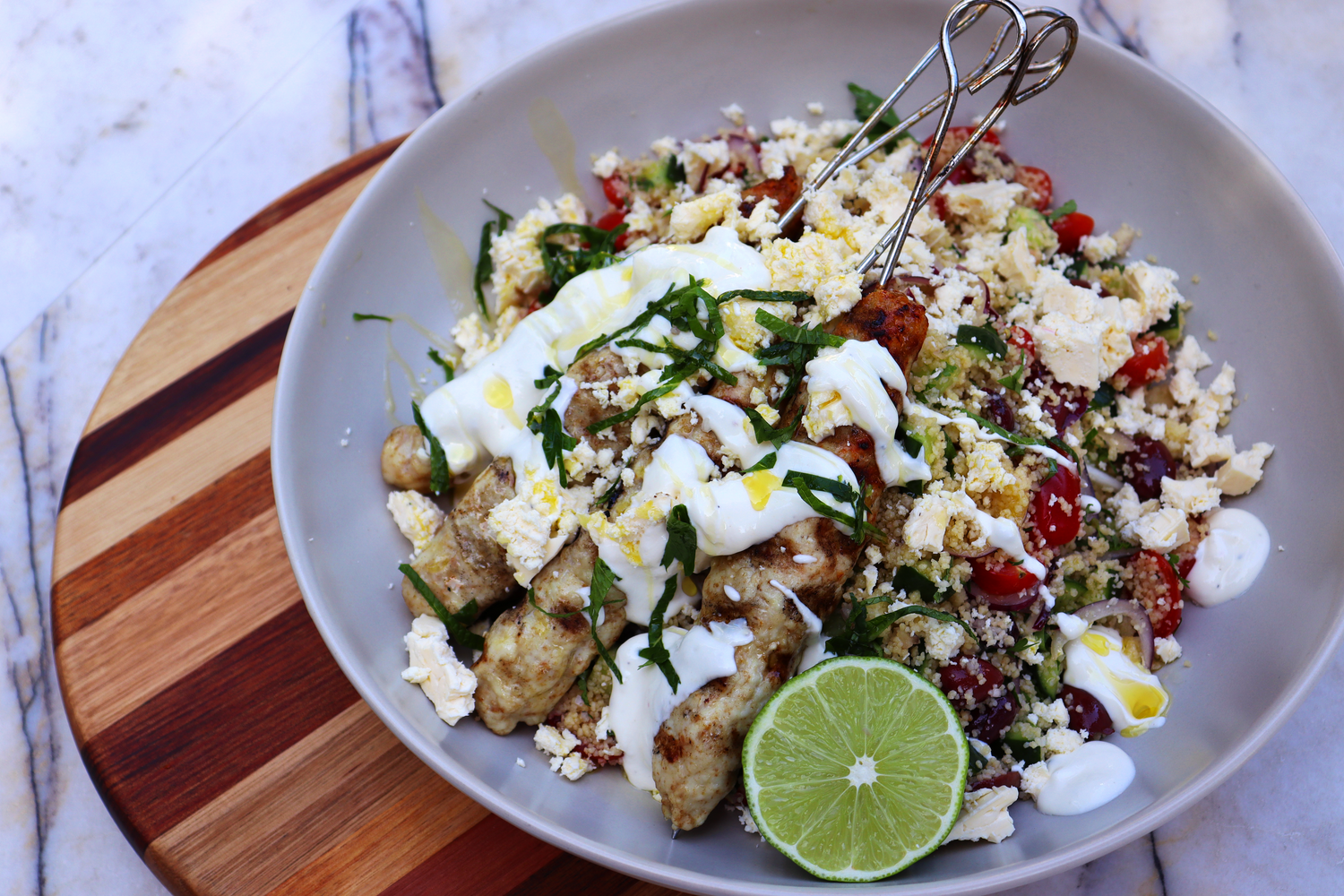 Turkey Kofta with Greek Couscous Salad and Lime Yoghurt